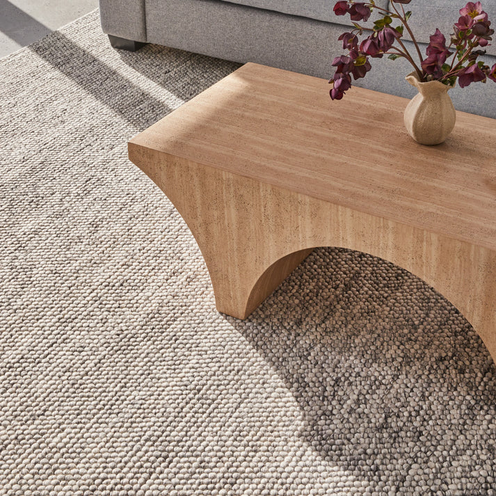 Add understated elegance to your space with the Pebbles Dream Linen Rug. Handwoven with premium wool, its ball-loop texture creates a beautifully tactile surface that feels soft and inviting underfoot.